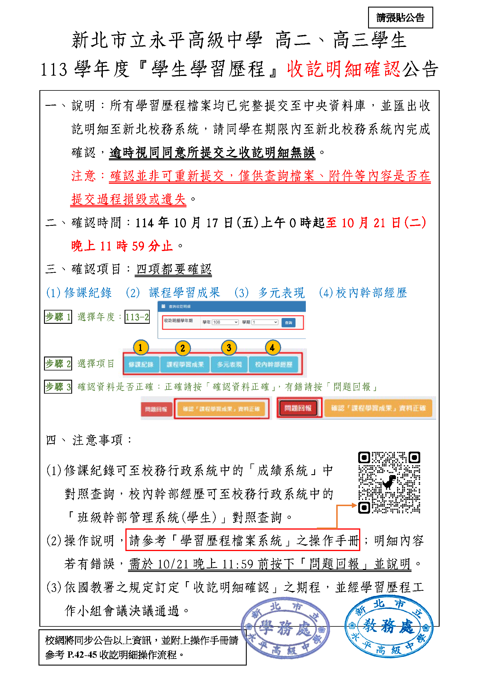 113學年度學習歷程檔案收訖明細確認
